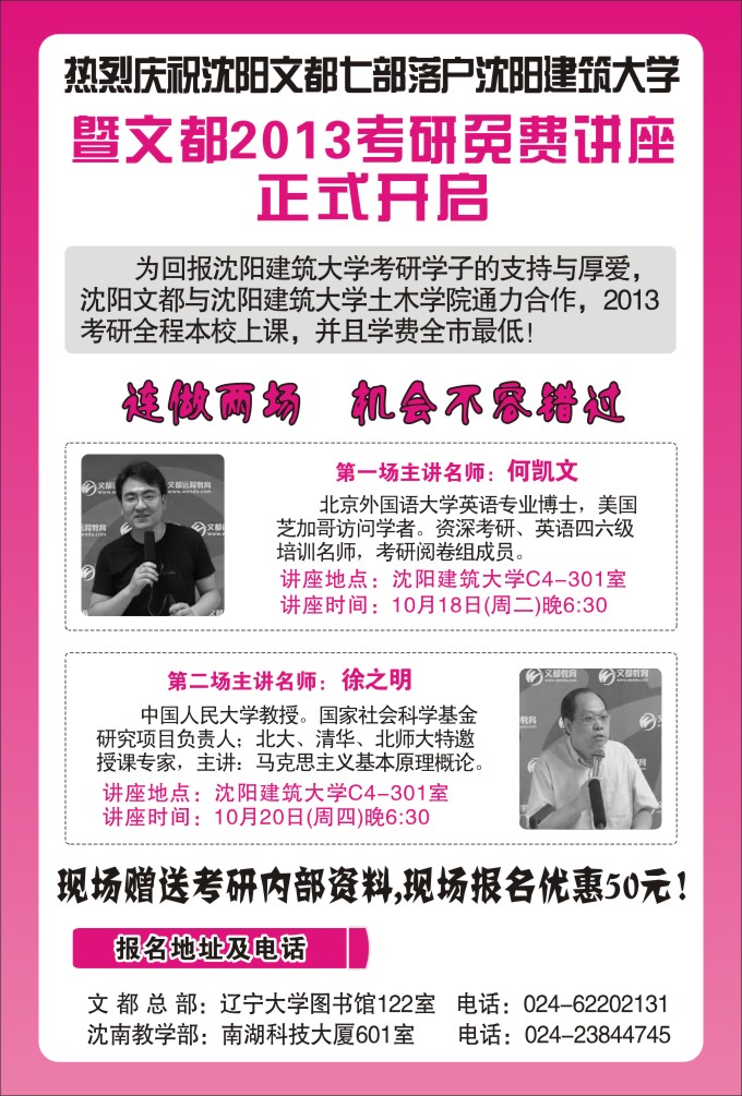 沈阳文都2013考研免费讲座正式开启